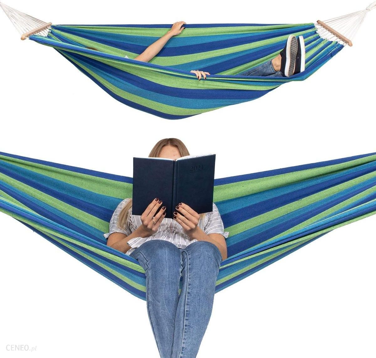 Myślisz hamak i co widzisz? Ciekawa książka, piękna pogoda, popołudniowa drzemka w cieniu? Daj się skusić na chwilę relaksu z hamakiem marki Springos. To idealny pomysł na spędzanie wolnego czasu w zaciszu domowego ogródka lub tarasu. Hamak jest duży, a jego maksymalne obciążenie to aż 150 kg! Modny niebiesko-zielony kolor hamaka jest jego niewątpliwą zaletą.